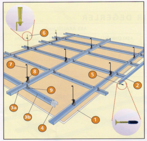 Klipsler tali profillerin içinden geçirilerek ana profillerin üzerine kıvrılarak uygulanır ve böylece tavan C profilleri birbirine bağlanır.